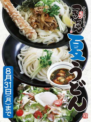 つるちゃんの「夏うどん」。8月限定のおすすめうどんをぜひご賞味ください。